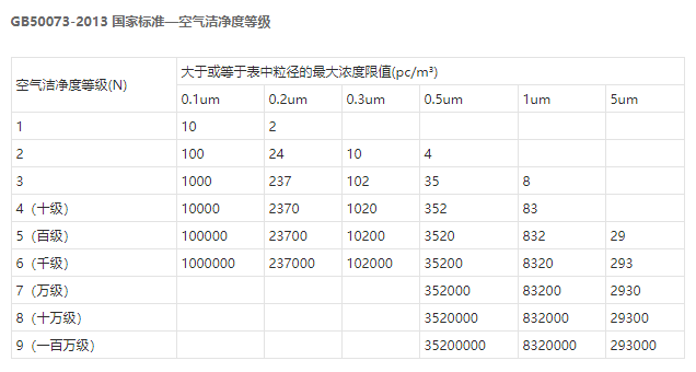 空氣潔凈度等級(jí)(air cleanliness class):潔凈空間單位體積空氣中,以大于或等于被考慮粒徑的粒子最大濃度限值進(jìn)行劃分的等級(jí)標(biāo)準(zhǔn)。國內(nèi)按空態(tài)、靜態(tài)、動(dòng)態(tài)對(duì)無塵車間進(jìn)行測試、驗(yàn)收,符合《GB50073-2013 潔凈廠房設(shè)計(jì)規(guī)范》、《GB50591-2010 潔凈室施工及驗(yàn)收規(guī)范》。